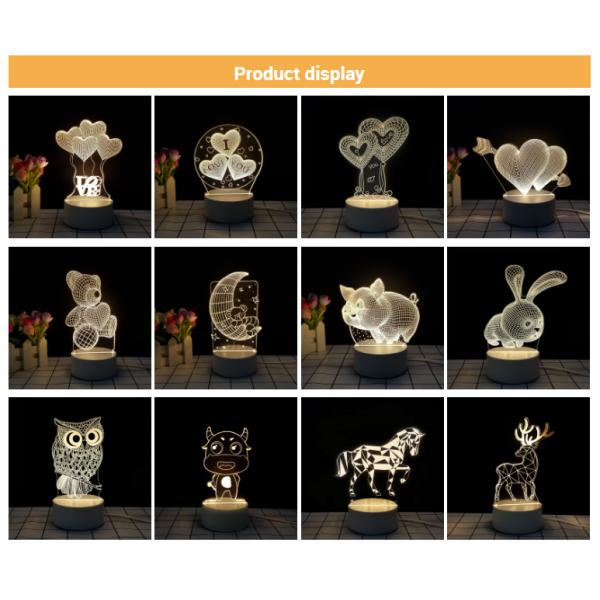 3. This night light can be used in bedrooms, child rooms, living rooms, bars, hotels, shops, cafes, restaurants, etc as decorative light. also can as a festival, birthday, or Christmas gift. Material: Acrylic Plate.